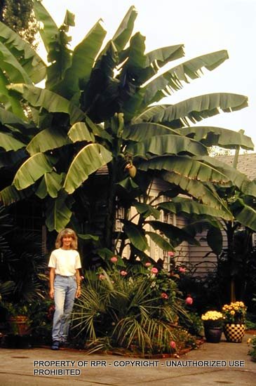 It grows to 25' and produces a small uneatable fruit. The leaves grow to 7' long and it makes an excellent structural plant in the garden providing an instant tropical look. It's hardy to around 0°F without mulch and has survived -20°F in Nebraska and Massachusetts when mulched with a pile of leaves 2' high. Gallon size plants grow to 6' the first year.